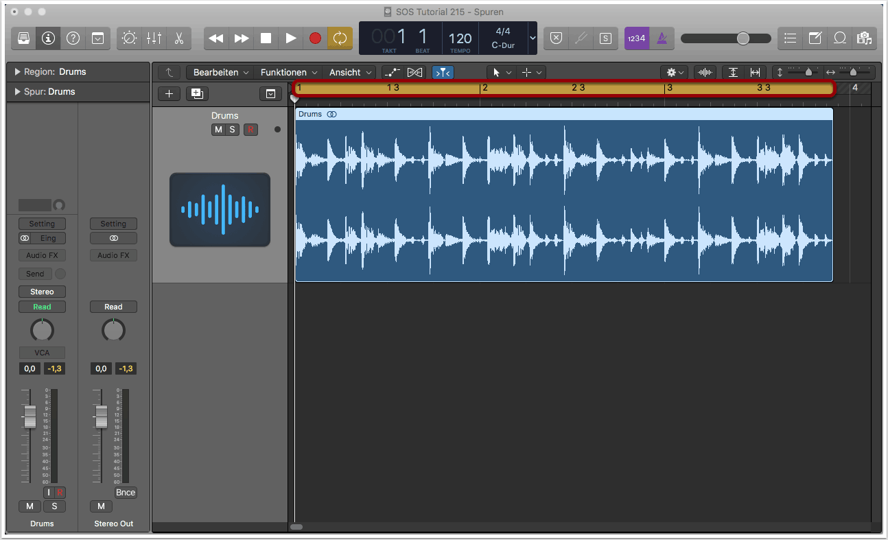Um die Auswirkungen von Parallel Compression unmittelbar zu hören, loopen wir die zu bearbeitende Sequenz.