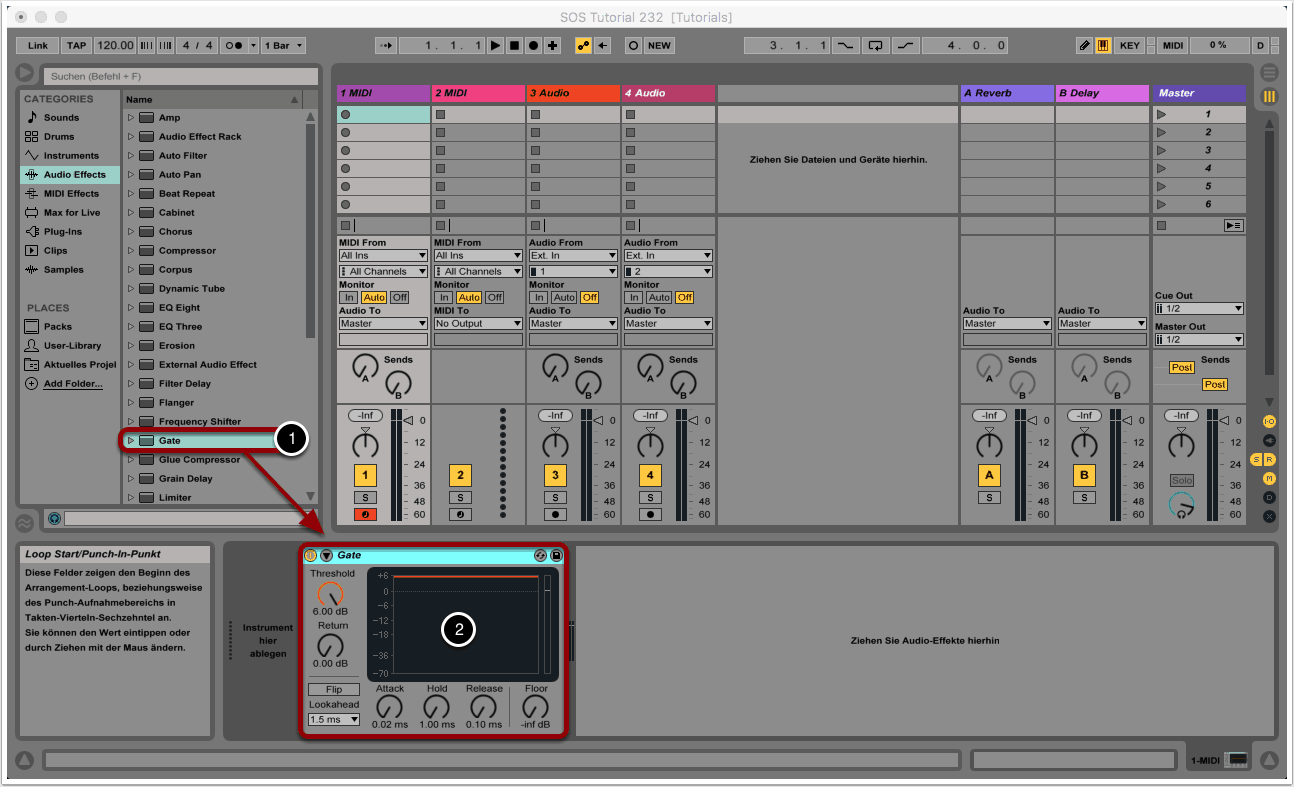 Die wichtigsten Parameter eines Gates wollen wir euch in den folgenden Schritten mit dem Gate-Modul von Ableton Live näher bringen.