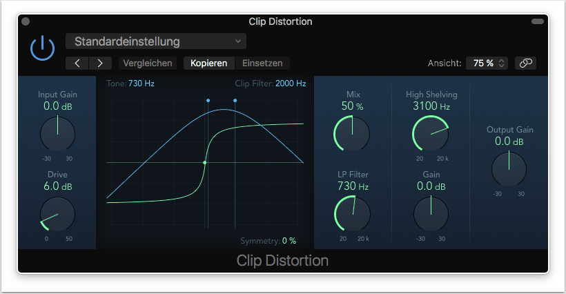Hier findest du eine Zusammenfassung der wichtigsten Bedienelemente von Clip Distortion.