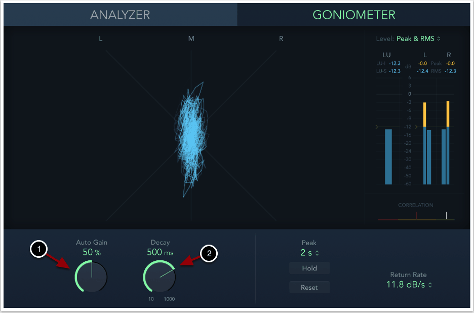 Im Gegensatz zum Korrelationsgradmesser stehen dir beim Goniometer zwei Parametern zur Verfügung: