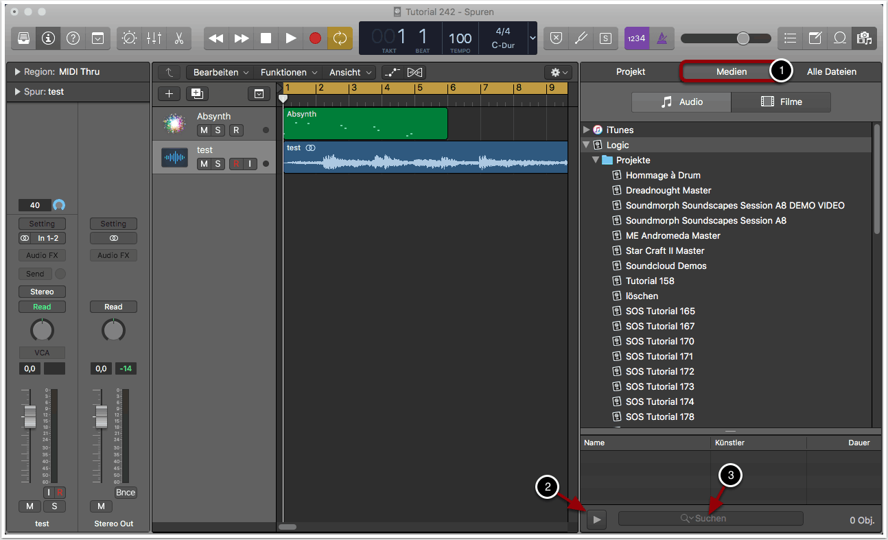 In diesem Tutorial wollen wir euch die drei Übersichten „Projekt“, „Medien“ und „Alle Dateien“ von Logic Pro X vorstellen. Diese dienen zur Verwaltung der in einem Projekt verwendeten Medien und zum Import externer Medien.