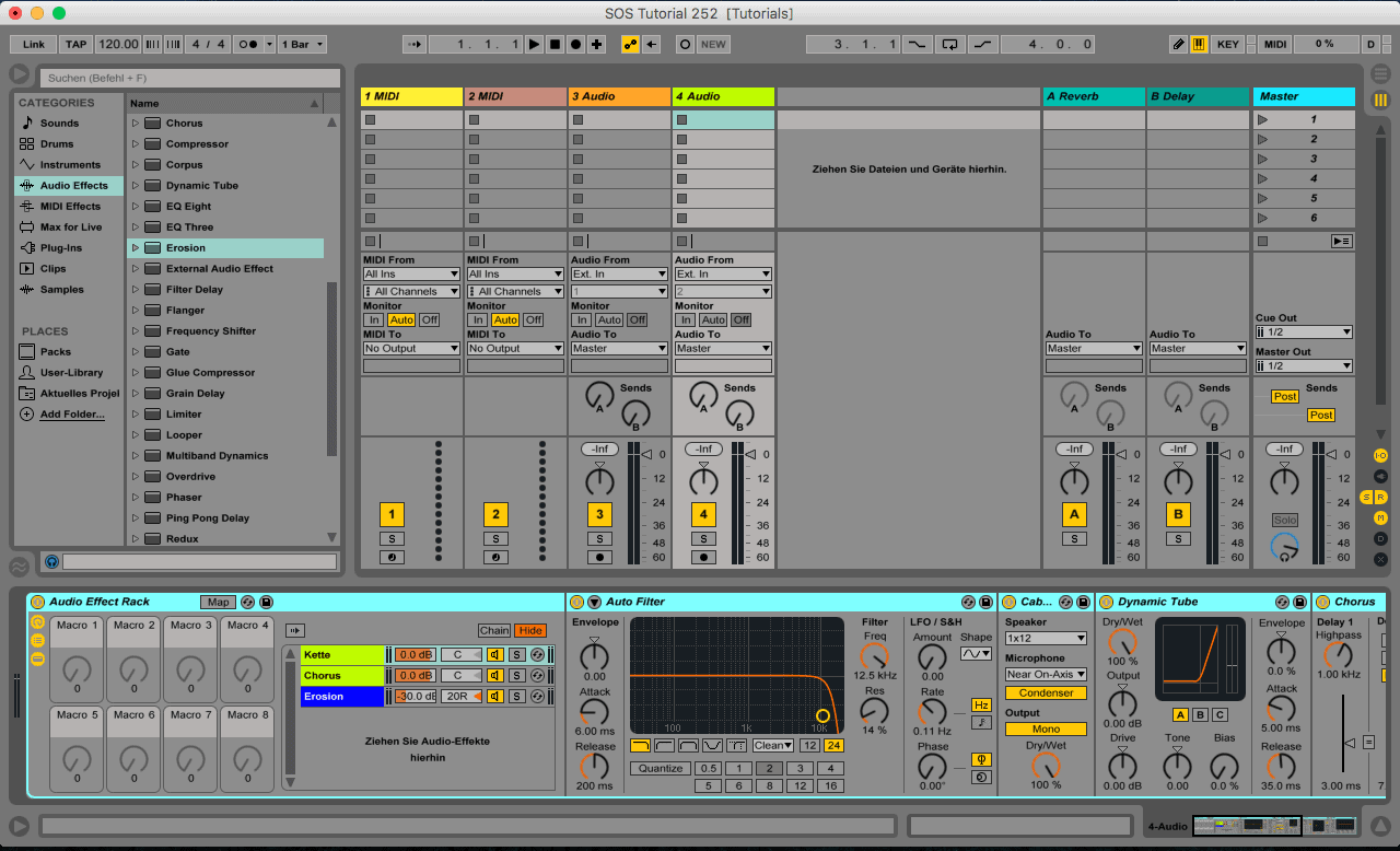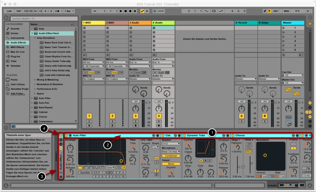 Effekt-Racks sind uns bereits in SOS Tutorial 251 begegnet, wo wir Dummy Clips verwendet haben, um in Echtzeit schnell zwischen verschiedenen Effekten zu wechseln. In diesem Tutorial decken wir die Grundlagen von Effekt-Racks ab. Wir zeigen dir, wie man Racks erstellt, wie man mehrere Effekte zu einem Rack zusammenfasst, und was es mit den verschiedenen Rack-Ansichten auf sich hat. In zwei folgenden Tutorials widmen wir uns explizit den Themen Zonen und Makro-Regler von Racks.