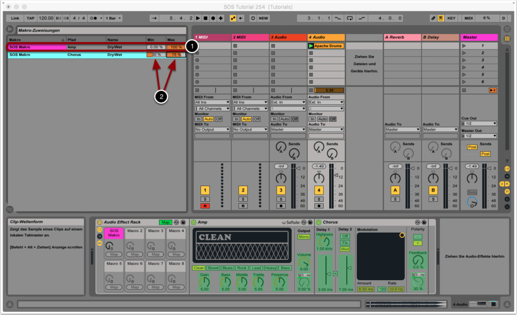 In SOS Tutorial 252 haben wir die Grundlagen von Effect-Racks in Ableton Live abgedeckt. In diesem Tutorial wollen wir ein Feature von Effect-Racks etwas genauer unter die Lupe nehmen: Makros.