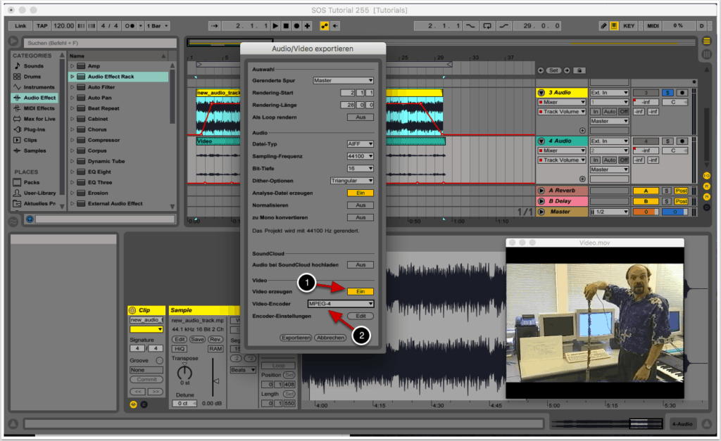 Obwohl Ableton Live primär eine Software zur Bearbeitung von Audio und MIDI ist, bietet die DAW auch einige Funktionen zur Bearbeitung von Videos. In diesem Tutorial wollen wir euch die wichtigsten Features zum Umgang mit Videos und deren Tonspuren vorstellen. Das passende Tutorial für Logic Pro X findest du hier: SOS Tutorial 167 Logic Pro X – Umgang mit Videos.