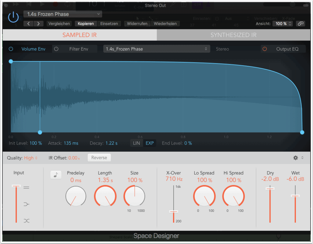 Für einen lebendigeren und weniger synthetisch klingenden Shepard-Ton kannst du den Reverb-Effekt Space Designer verwenden.