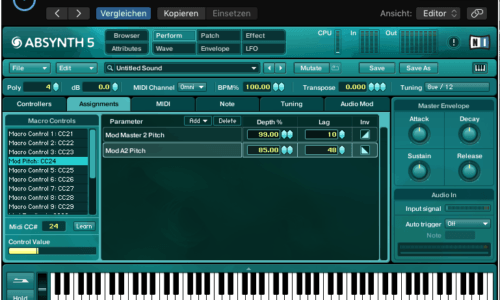 Ziel Neben Maus und Tastatur können bei den meisten Softsynths auch externe MIDI-Controller zur Klangsteuerung verwendet werden. Oft genügt dazu ein einfacher Rechtsklick auf einen Parameter, der daraufhin einem beliebigen Controller zugewiesen werden kann. Mit dem Synthesizer-Flaggschiff Absynth von Native Instruments ist dieser Vorgang ein wenig komplexer. In diesem Tutorial wollen wir euch zeigen, wie […]