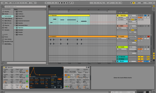 Ziel In diesem Tutorial wollen wir mit dem Operator von Ableton Live auf Basis von weißem Rauschen eine Reihe synthetischer Hi-Hats und Shaker erstellen. Während wir uns in diesem Tutorial mit der Programmierung des Patches konzentrieren, wollen wir in Tutorial 102 die damit erzeugten Perkussionsklänge mit den Audio-Tools von Live weiter processen. Bei Klangbeispiel 1 […]