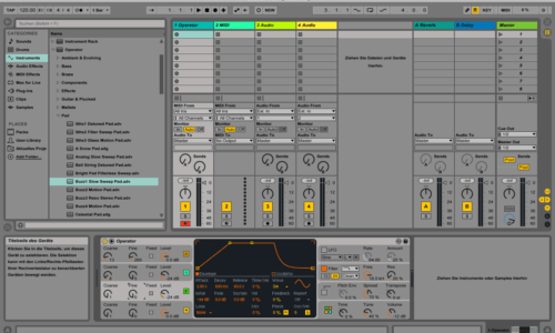 Ziel In diesem Tutorial wollen wir mit dem Operator von Ableton Live Risers und Build-ups mit Tremolo-Charakter erstellen. Bei den Klangbeispielen handelt es sich um Varianten des gleichen Ausgangspatches mit unterschiedlichen Automationsverläufen. 1. Projekt erstellen und Operator auswählen Wir erstellen in Ableton Live ein neues Projekt. Im Instrumenten-Ordner wählen wir den Operator aus und ziehen ihn […]