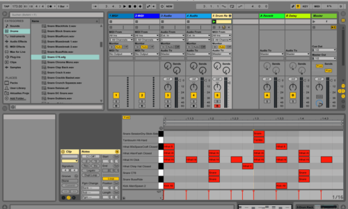 Ziel In diesem Tutorial wollen wir mit dem Drum Rack von Ableton Live einen klassischen Drum&Bass Beat programmieren (Klangbeispiel 1). Den Drum-Loop werden wir dann in Tutorial 074 durch die Anwendung einiger Effekte weiterverarbeiten (Klangbeispiel 2). Wir verwenden dazu ausschließlich Samples und Effekte von Live. 1. Projekt erstellen und Drum Rack laden Wir erstellen in […]