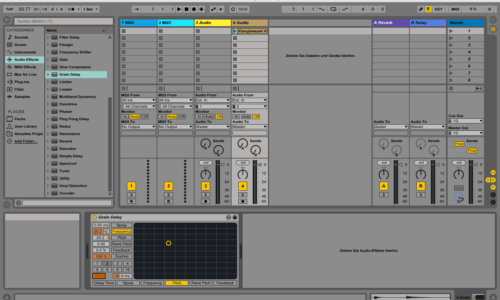 Ziel In diesem Tutorial wollen wir Ableton Lives Grain Delay verwenden, um Dub Delays zu erzeugen. 1. Quellsamples importieren Wir erstellen in Ableton Live ein neues Projekt. Per Drag&Drop ziehen wir die Samples, die wir mit dem Grain Delay bearbeiten möchten, in eine der beiden leeren Audiospuren – entweder in einen der freien Slots in […]