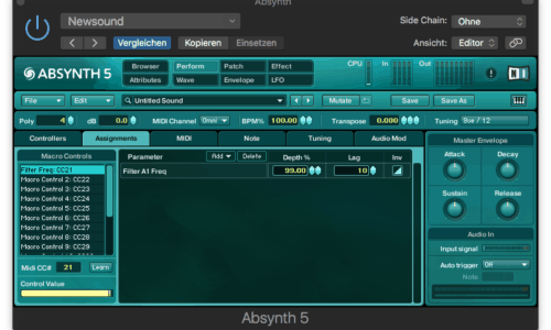 Ziel Mit den Macro Controls von Native Instruments Absynth kannst du beliebige Parameter des Softsynths externen MIDI-Controllern zuweisen. Damit ergeben sich neue, interaktive Möglichkeiten für Live-Performances, Sound Design und Producing. In diesem Tutorial zeigen wir dir Schritt für Schritt, wie du dein MIDI-Keyboard in einen Absynth-Synthesizer verwandeln kannst. 1. Patch erstellen oder laden Erstelle in […]