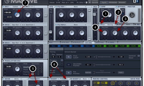 Ziel Artists wie Amon Tobin oder Noisia sind nicht zuletzt bekannt wegen ihrer fetten Bass-Sounds. In diesem Tutorial zeigen wir, wie man ähnliche Basslines mit dem Synthesizer Massive kreieren kann! 1. Patch erstellen Wir erstellen einen neuen Patch unter „File“ → „New Sound“. 2. Oszillator einstellen Zunächst bestimmen wir die Eigenschaften des Oszillators: Wir aktivieren […]