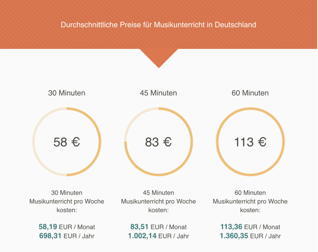 - Hohe Kosten, siehe Grafik – Zum Vergleich: Die Kurse der School of Sound kosten mit 30-40 CHF / Euro pro Stunde deutlich weniger.