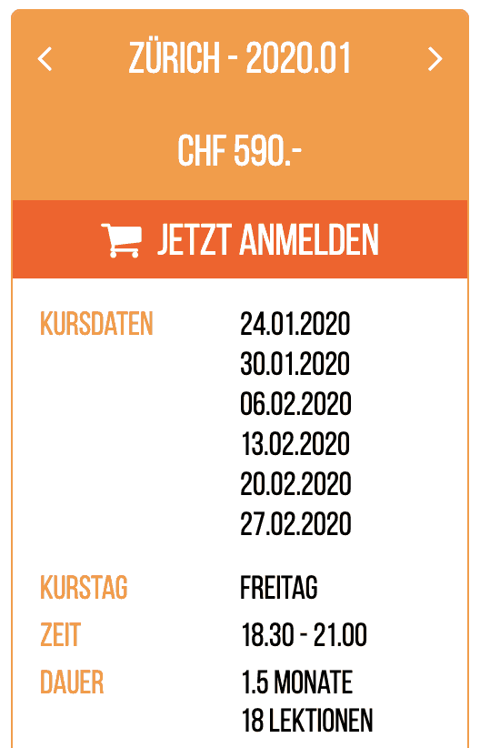 - Kurse inklusive korrektem Datum bestellst du direkt mit entsprechender Kursort Angabe