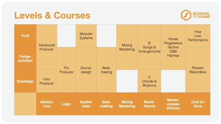 Für länger dauernde Kurswünsche bietet die School of Sound Diplome an – Du kannst es dir ganz persönlich selbst zusammenstellen und direkt online buchen.